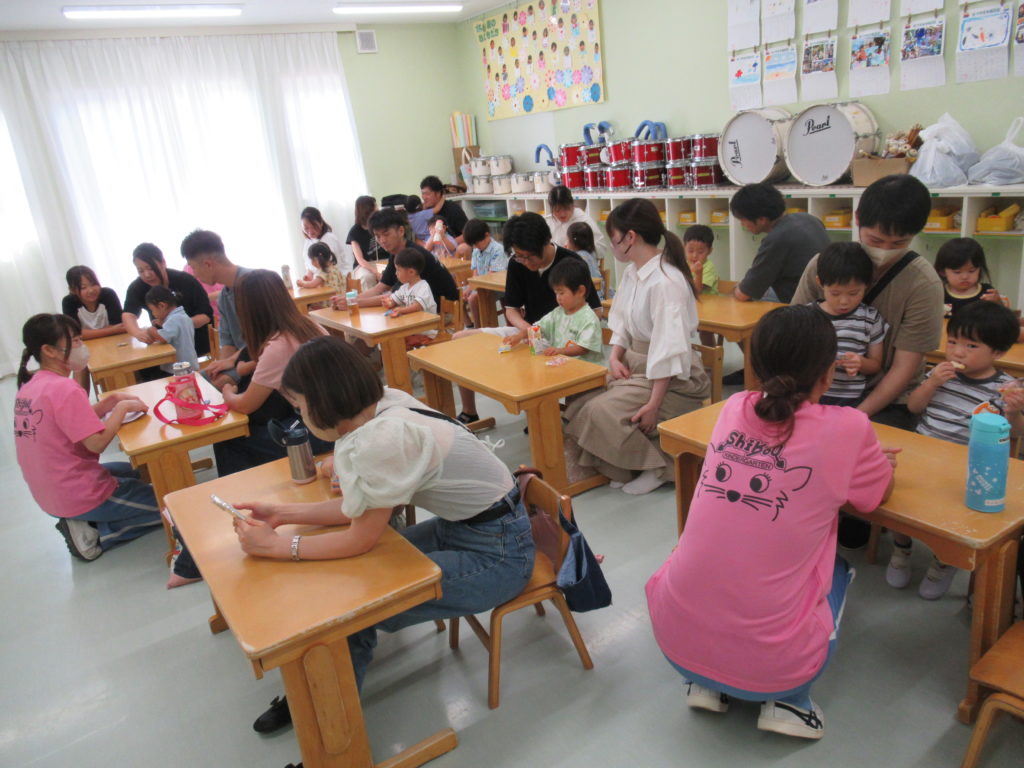 おやつの会では、星たべようとラムネを食べて「おいしいね」「このお菓子食べたことあるよ」と楽しい会話をしていました♪