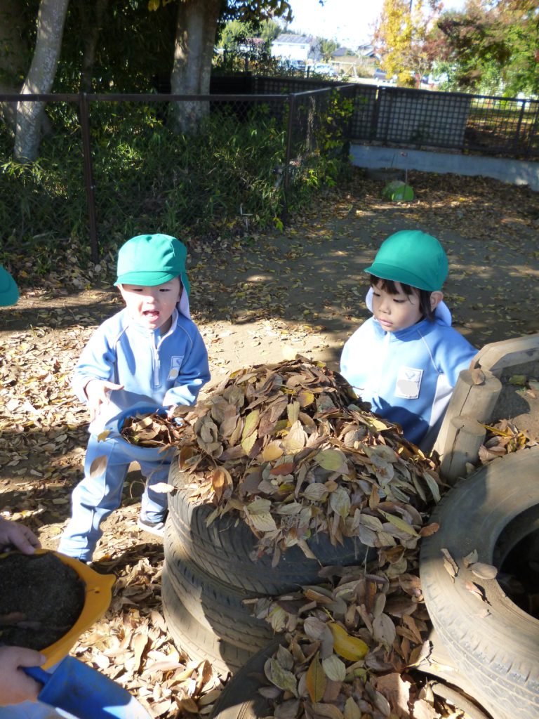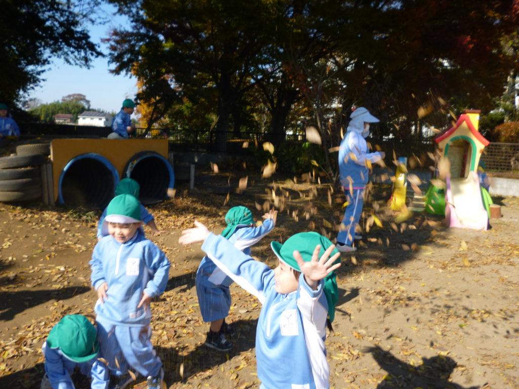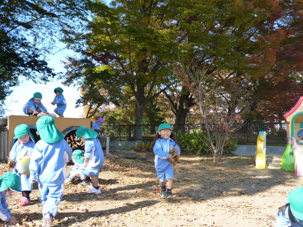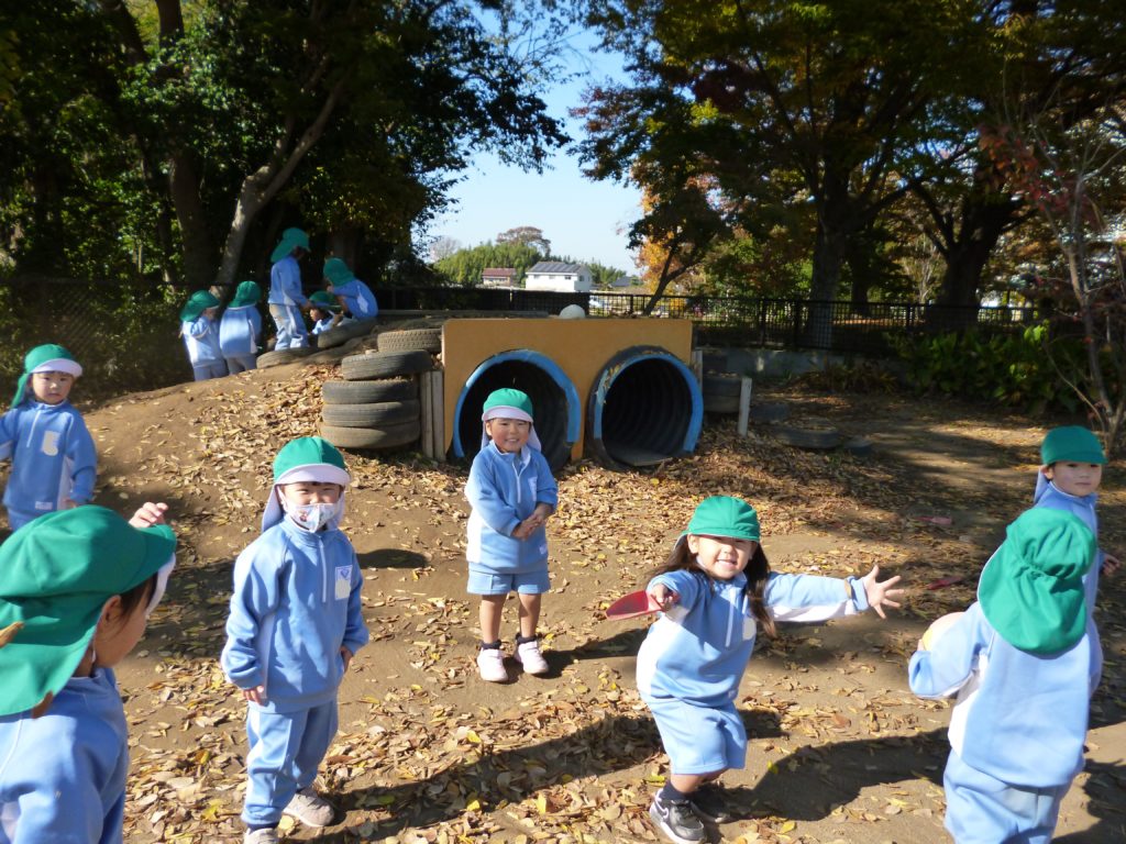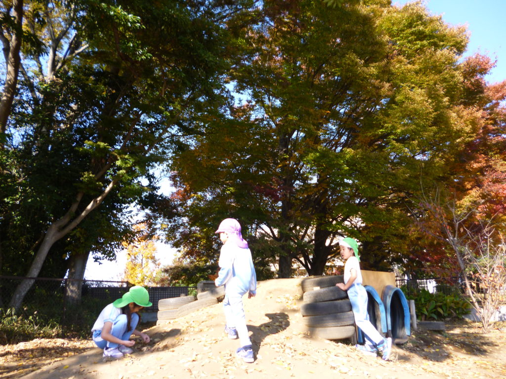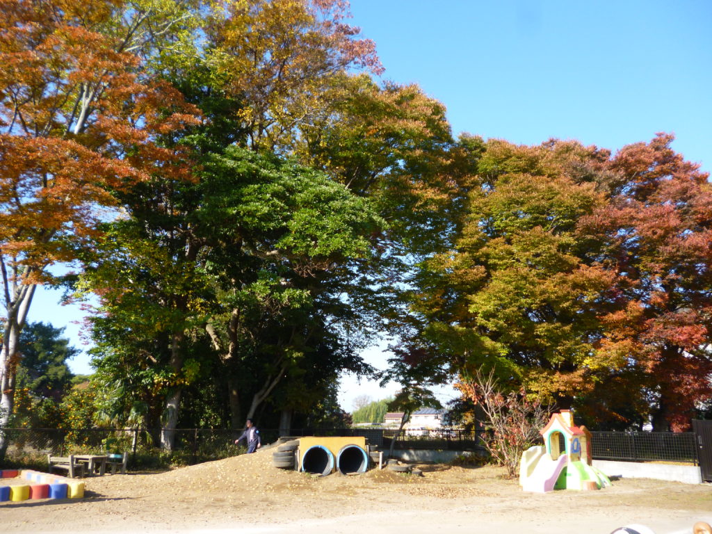 今年は紅葉が遅れてやってきましたので、幼稚園も今まさに紅葉シーズンをむかえています。